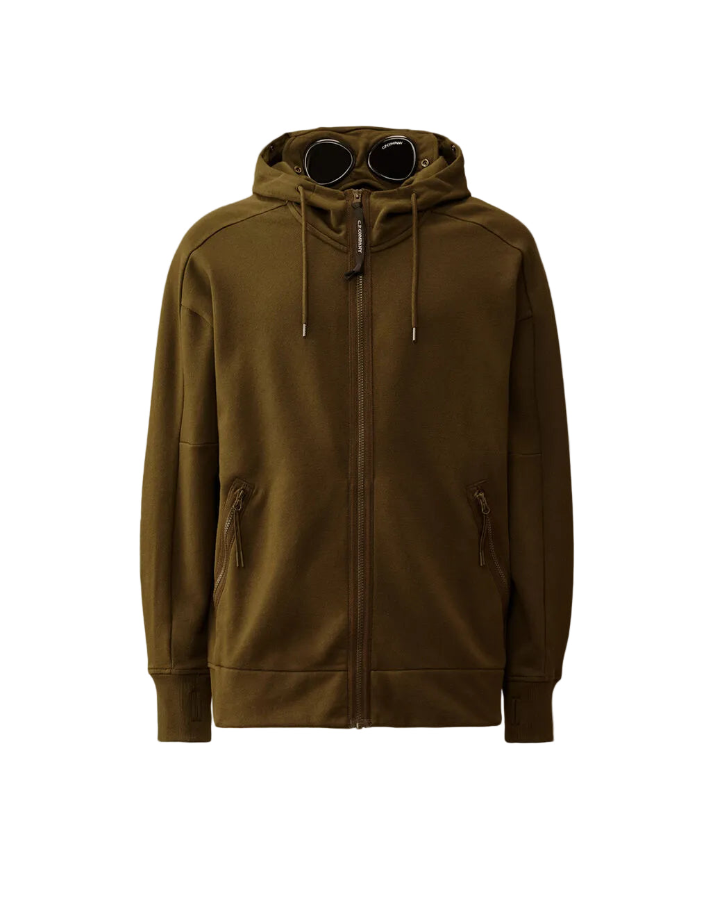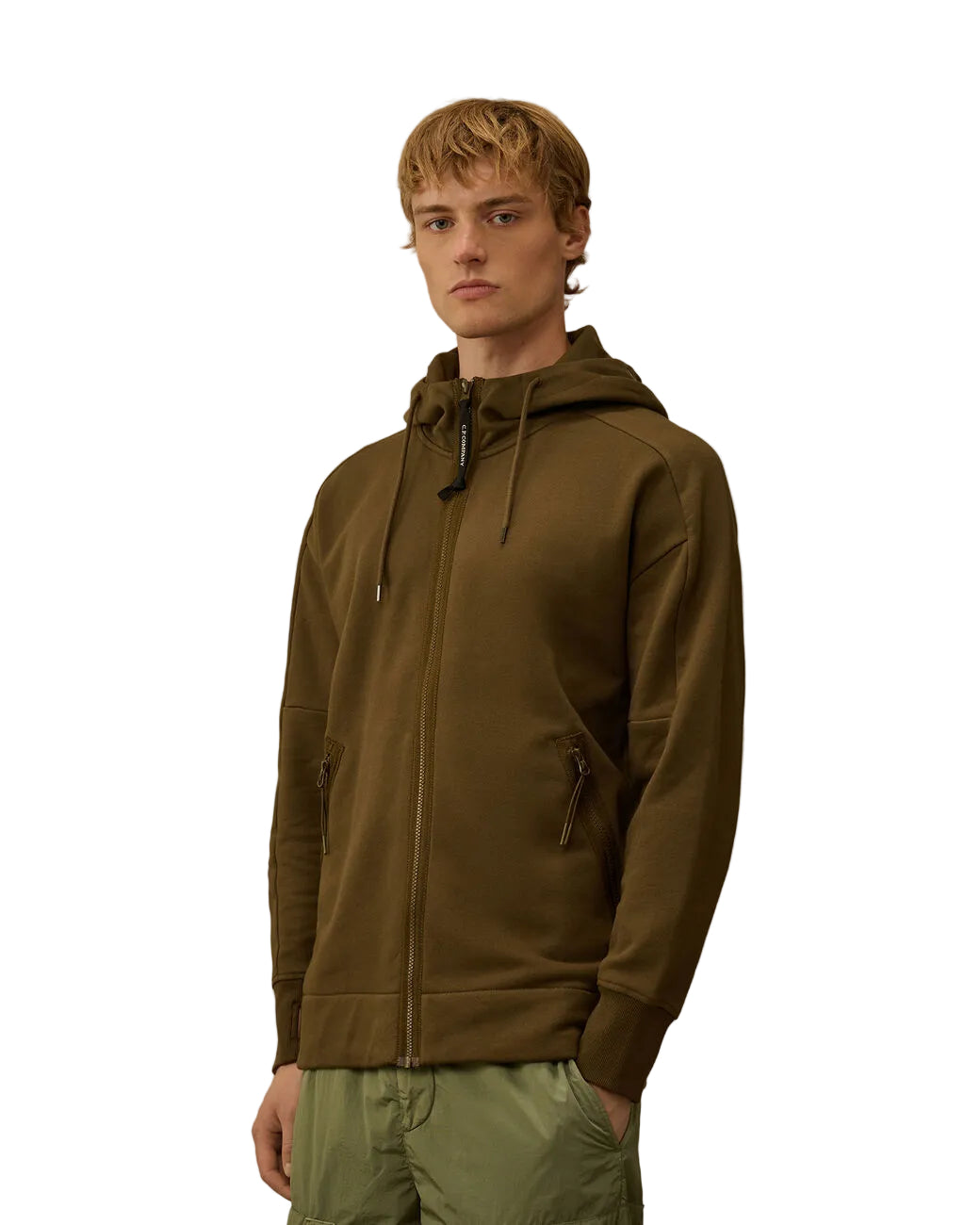 C.P. COMPANY - Hoodie zippé en coton kaki à capuche