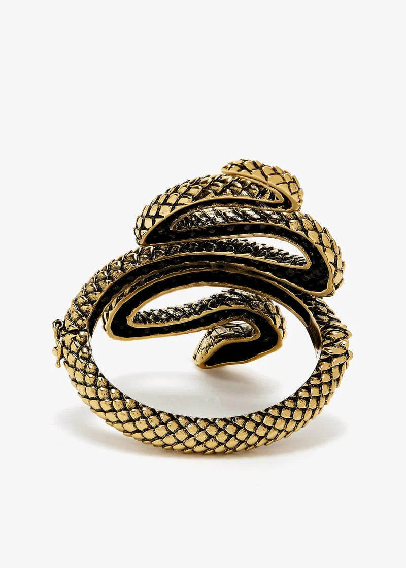 La manchette Chloé Snake affiche une allure audacieuse avec sa forme spiralée et sa tête de serpent raffinée. Inspiré des broderies Chloé d'archives, ce bracelet s'accorde parfaitement avec une manchette de chemise ajustée pour une touche d'élégance et une coupe moderne.