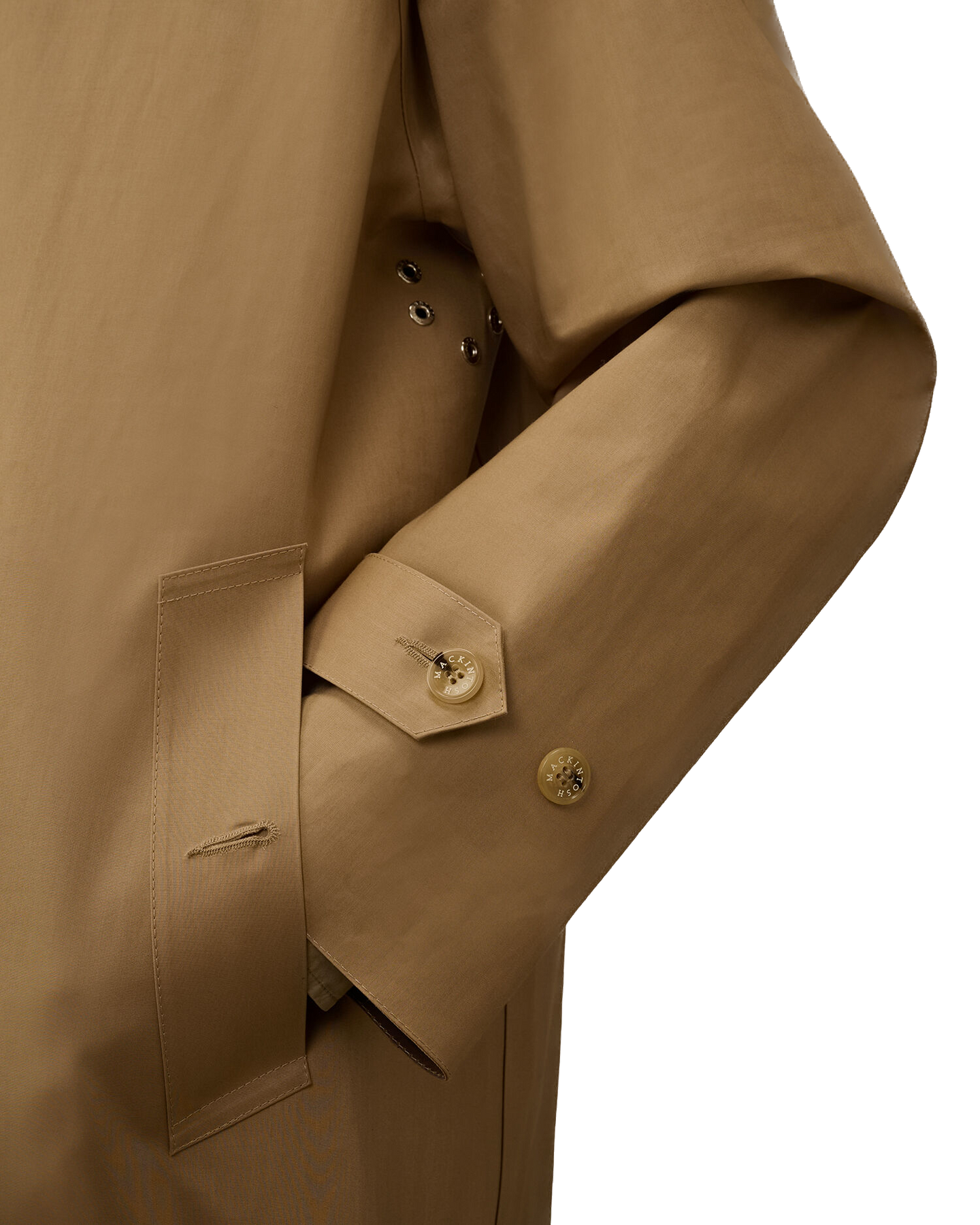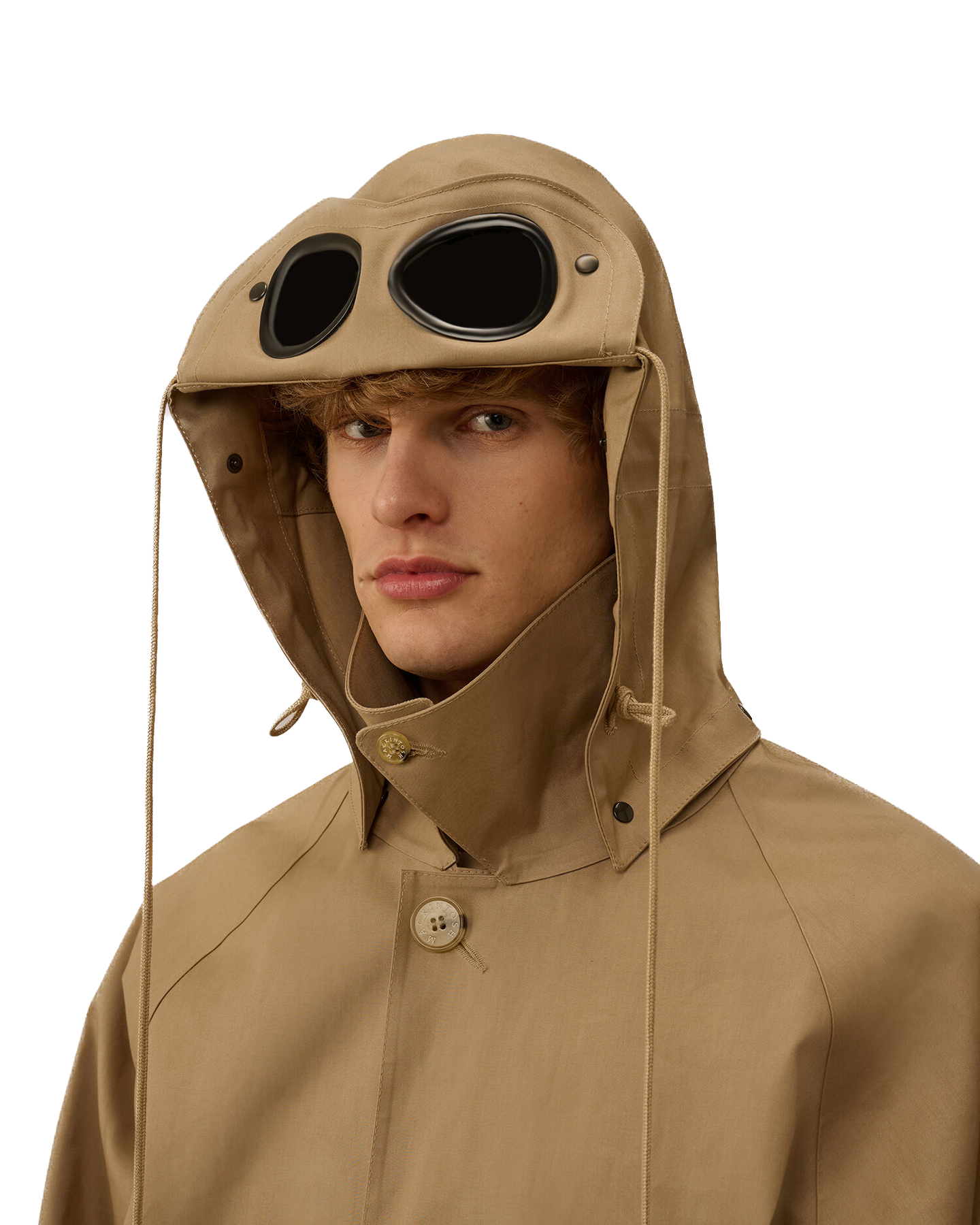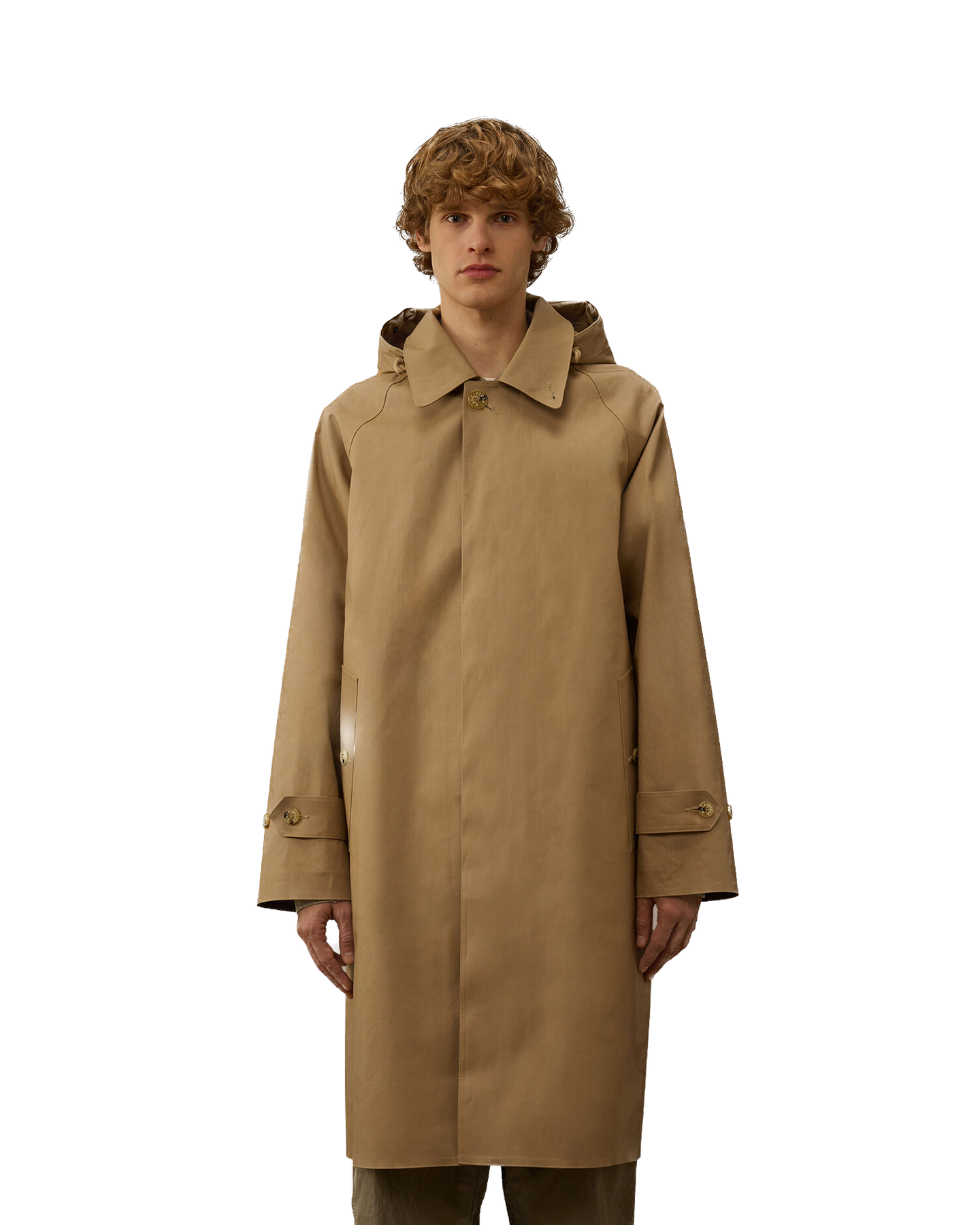 Manteau en coton contrecollé, fabriqué en Écosse dans le cadre d'une collaboration entre Mackintosh et C.P. Company. Le tissu en coton double épaisseur, contrecollé avec une membrane caoutchoutée, offre une protection optimale contre l'eau et le vent tout en conservant une esthétique raffinée. Chaque panneau de tissu est cousu, fixé et scellé à la main à l'aide d'une colle spéciale, et les coutures sont recouvertes d'un ruban imperméable appliqué et pressé à la main afin de garantir une imperméabilité et une durabilité maximales.Le manteau est doté de la capuche Goggle emblématique, réglable à l'aide de cordons élastiques et amovible grâce à des boutons-pression. Le col peut être porté relevé ou rabattu grâce à un bouton de fixation. La fermeture avant est dotée de boutons cachés recouverts d'un rabat, avec un seul bouton visible. Le manteau est complété par des poches passepoilées en biais avec boutons cachés, des poignets réglables avec des sangles à boutons et une fente arrière réglable. Coupe classique.