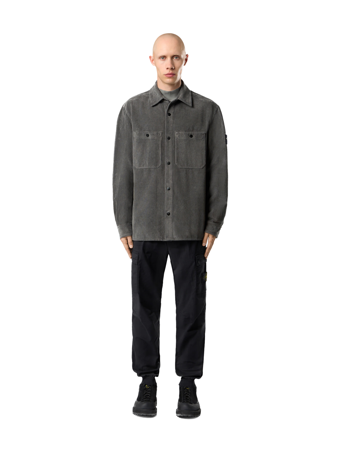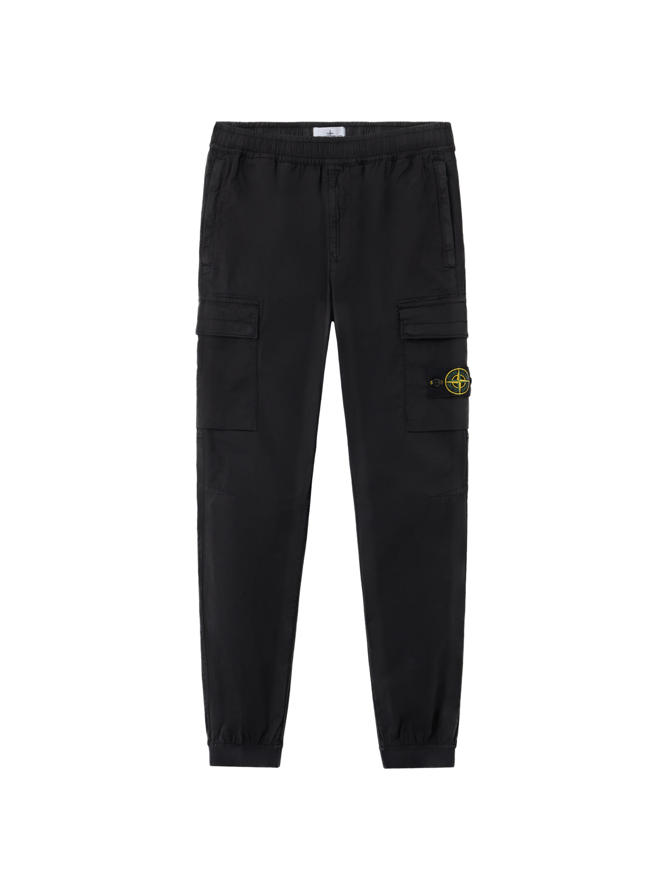 Poches mains verticales à glissière dissimulée. Poche à bouton-pression sous rabat fixe au dos. Poche à soufflet et à rabat sur chaque jambe avec boutons-pression dissimulés ; la poche gauche est ornée du badge Stone Island. Genoux galbés. Bande élastiquée aux chevilles. Taille élastiquée à cordon de serrage intérieur. Braguette zippée. Coupe fuselée regular.
