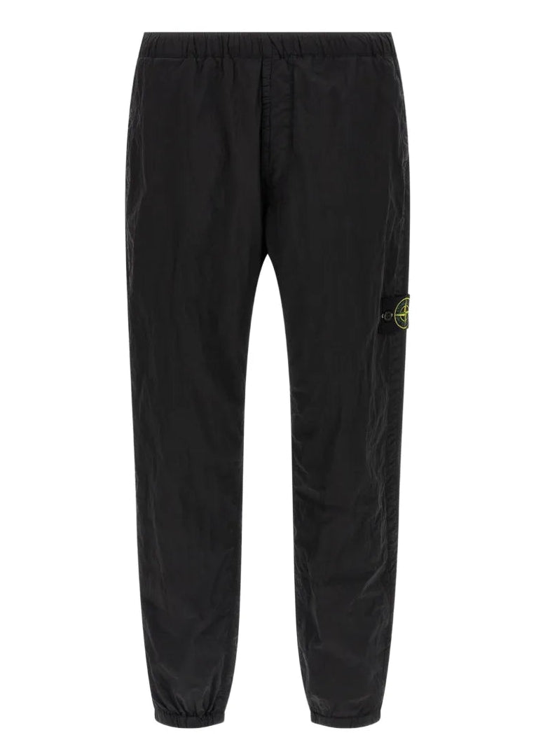 black logo patch elasticated waistband elasticated cuffs zip at ankles rear zip pocket