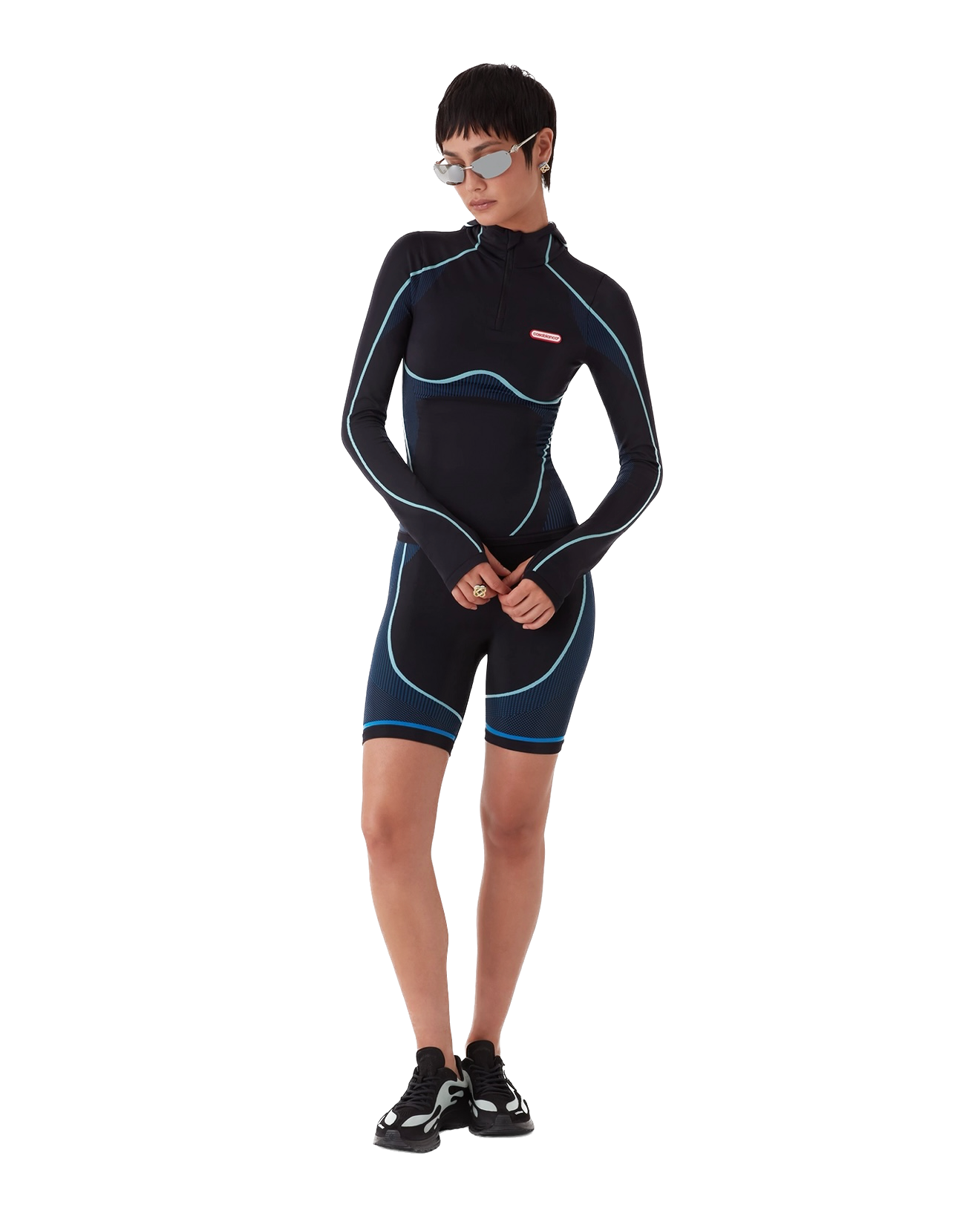 Le short sans coutures est un modèle sans manches d'inspiration sportswear, orné du logo CC entrelacé de la maison en son centre. Confectionnée en tissu extensible, elle est complétée par une bande élastique ornée du logo Casablanca de la maison, des bretelles, des empiècements et une encolure dégagée.
