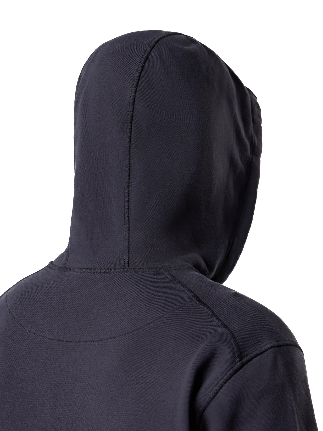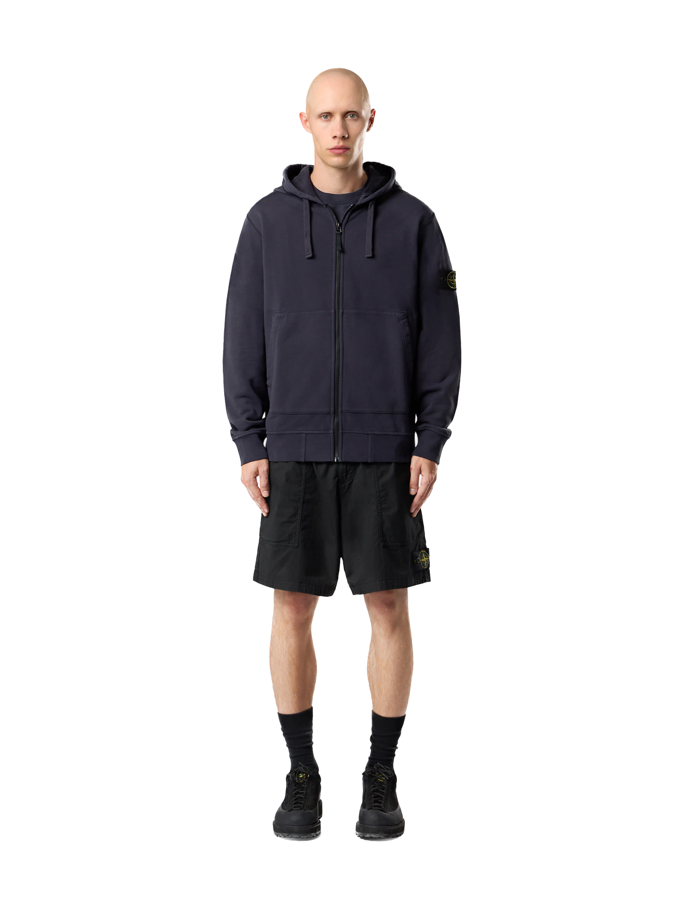 Capuche à cordon de serrage. Poches mains plaquées à ouverture en biais. Badge Stone Island sur la manche gauche. Poignets et bord inférieur côtelés et élastiqués. Fermeture zippée. Coupe regular.